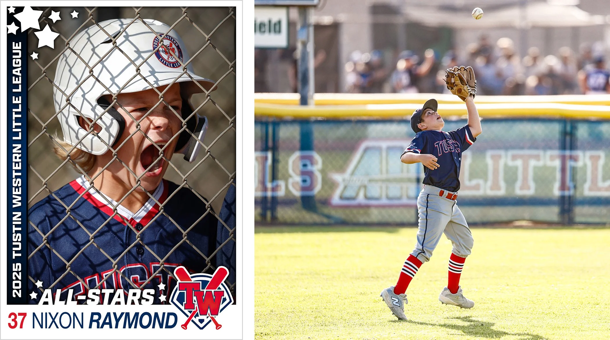 Non-stop over here! This one is a quickie. A coach from that TWLL Dodgers post has another son and he’s on the All-Stars for 11U. He floated the idea of having me out and we made it happen. The boys played great and had a couple big innings. There was also some quick 123 innings on both sides, but South Sunrise just wasn’t hitting the ball like Tustin was. This gallery is a little fragmented with unpaids blurred and faded. We may still do a team set of trading cards but we will have to see how it shakes out. We put the deal together quickly and not all parents responded so I discounted the visit. Sometimes a blog post is enough to get us over the finish line. The gallery is unlocked for downloads. The third time through the line up I hoofed it out to center field as the sun was perfect for me to try the 100-300 from there. I cranked it down to 160 ISO and sturdied the lens on the fence, that Teddy Germany image below looks fantastic! Here is the 2025 Tustin Western Little League All-Star Gallery (CLICK). B