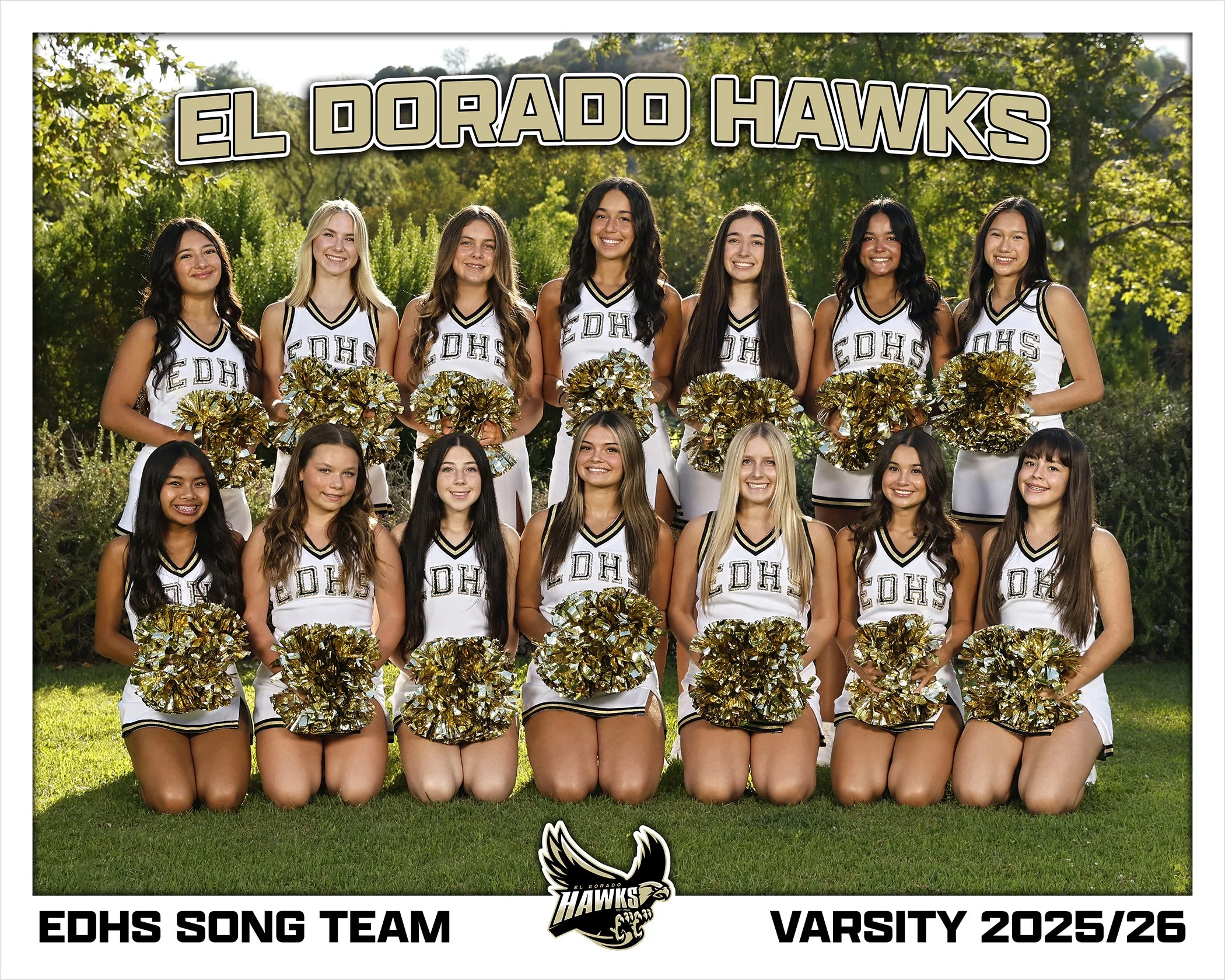 NOT an official Photo Day, but rather a rush job to get senior banners hanging and headshots in the football media guide! This was actually three different days of shooting and a LOT of texting! On the first day my son Daniel helped and we met the five seniors and we shot a bunch of group stuff and shots for banners. On the next visit my other son Archie was my assistant and the girls came for team shots and the non-seniors got their headshots. We had a make up day for three of the girls and those matched up well with the others, a helpful mom was my assistant! I made team 8x10’s with graphics because the gallery felt incomplete without them. We may schedule an official Team Shoot in September, we will see. Anything else ordered will get polished. Here is the 2025 El Dorado Song Team Gallery (CLICK). B