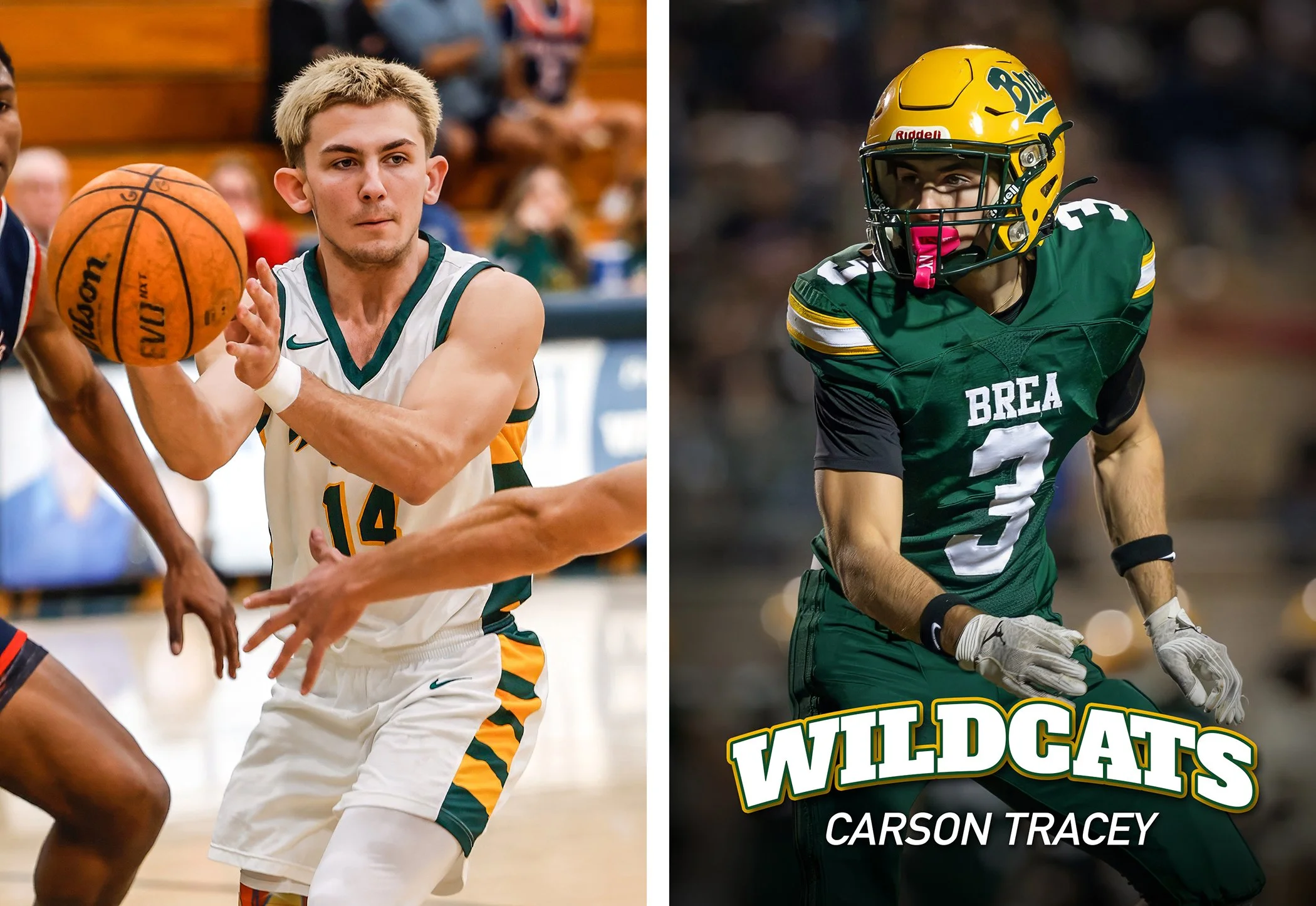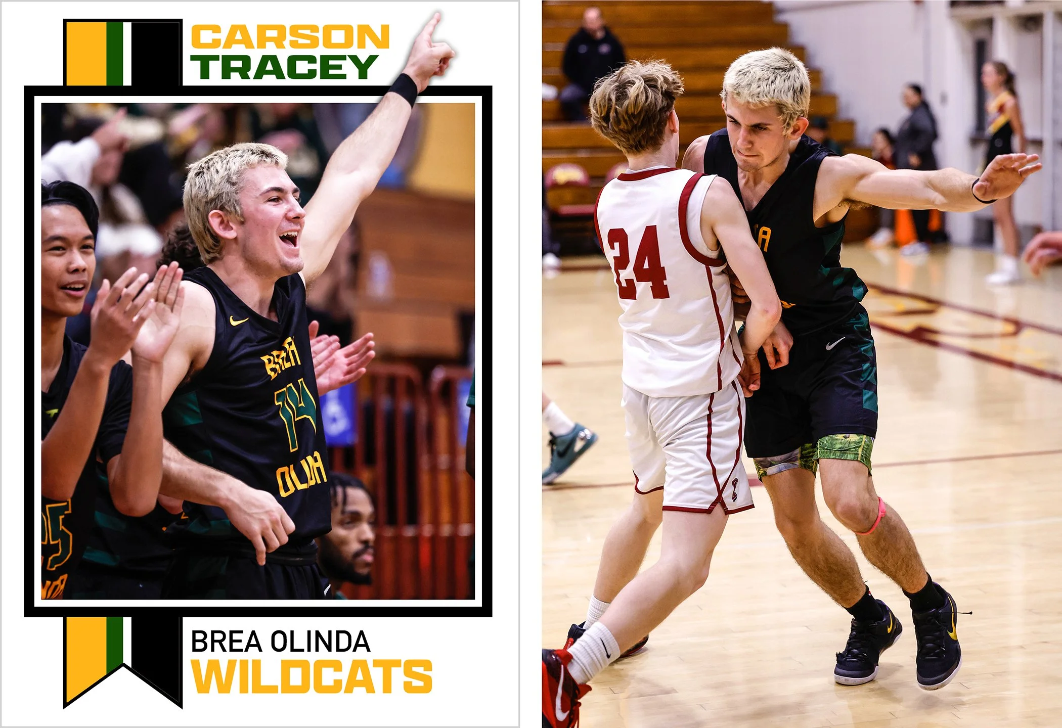 Back to Brea. I shot Brea football at Fullerton, at home against Westminster, and then my buddy Sean went to the game at home against Esperanza. I love the real grass at Brea, it’s a great look. For Brea basketball I shot the team at home against Yorba Linda and then on the road at Esperanza. Carson opted out of volleyball this year even though it looked great on last year’s collage! Carson is a good target because he is so expressive, and it’s usually happy. Ha. I feature one of Carson’s basketball picks below because it’s bone jarring, no one is running through his compact football frame! Here is Carson’s 2024/25 Brea Gallery (CLICK). B