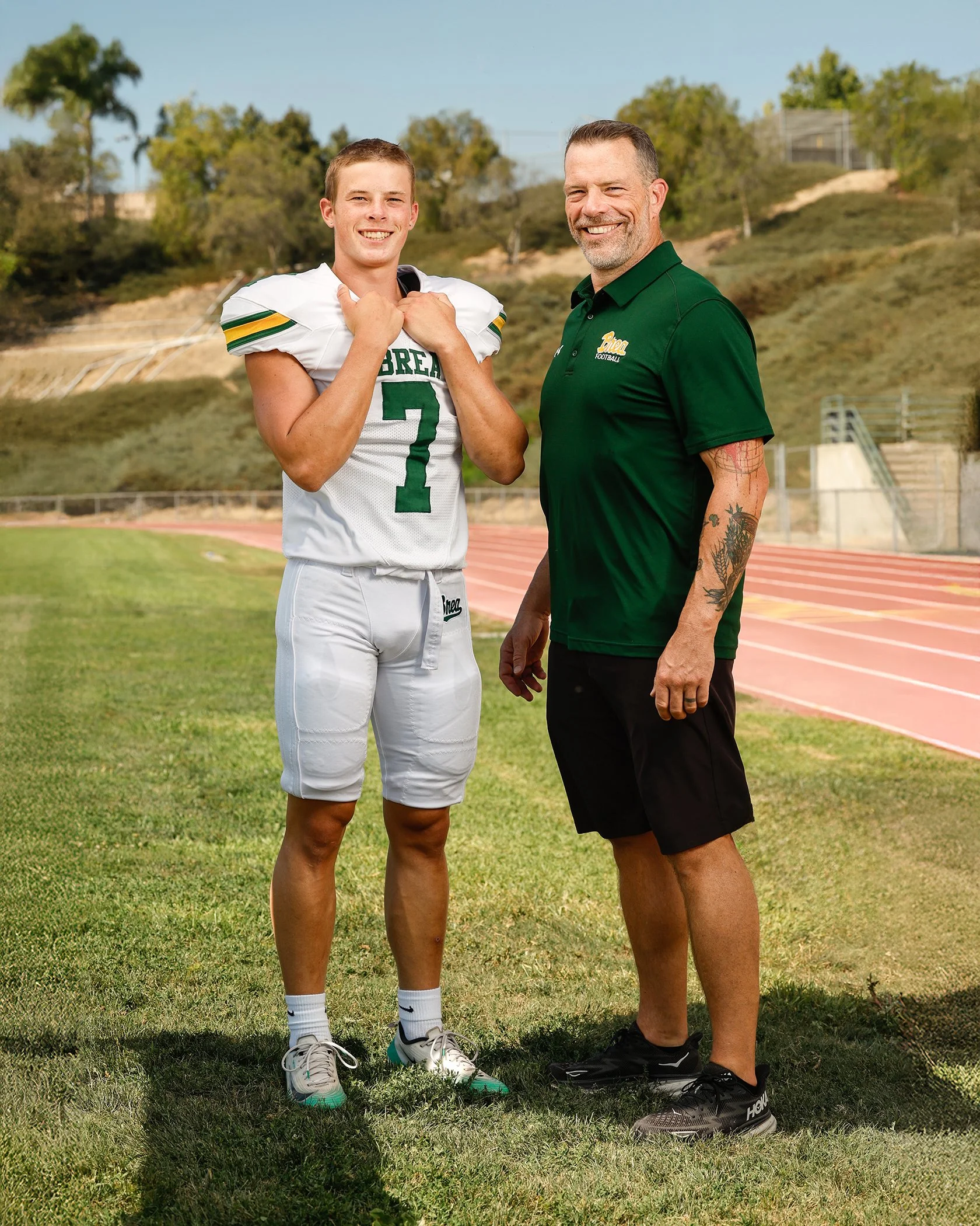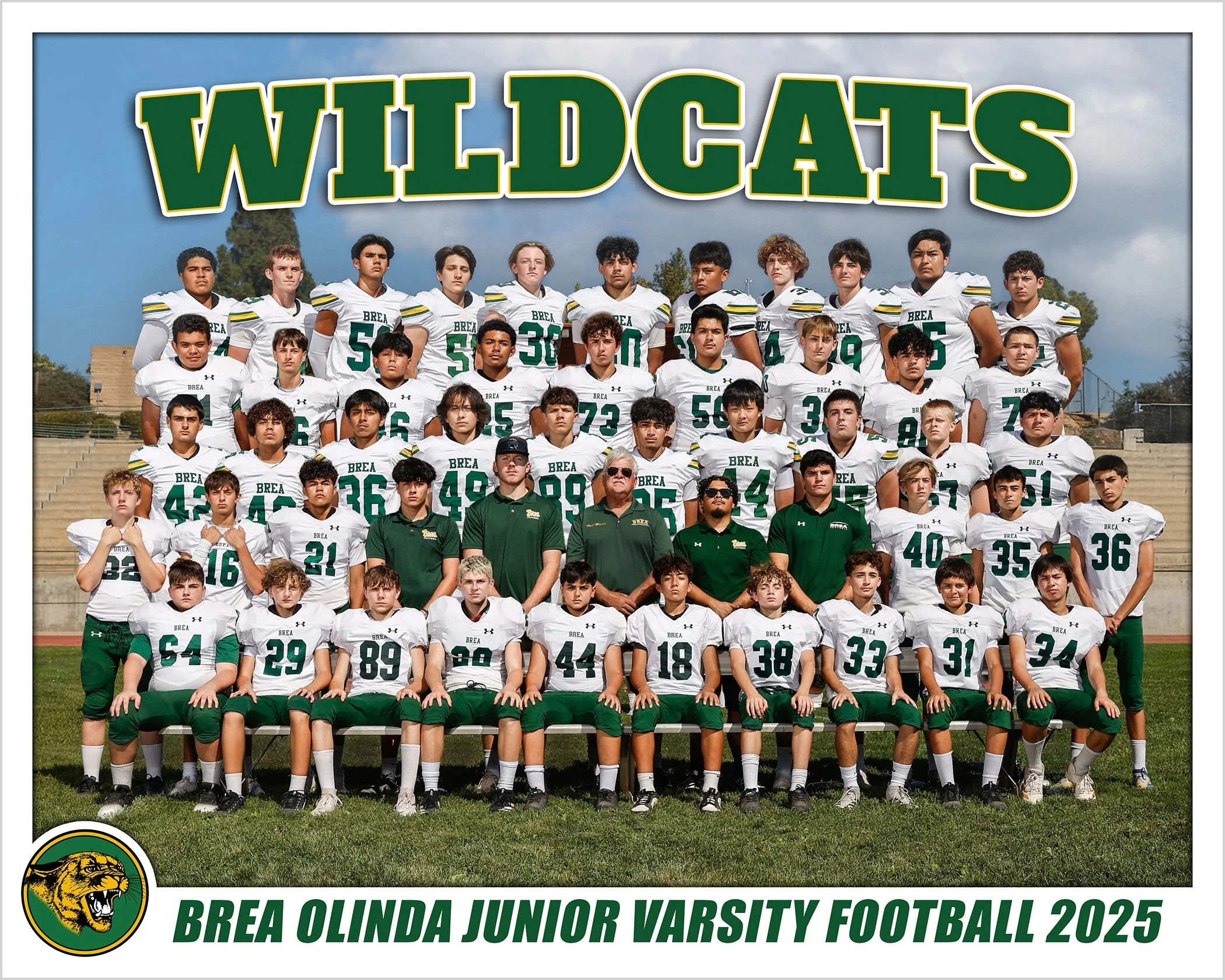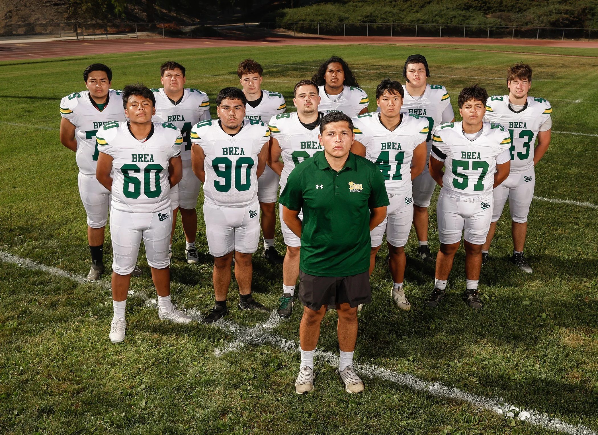 A little help here! Brea Football didn’t have a Photo Day scheduled until September sometime and like the El Dorado Song job, that means there isn’t photos for the media guide! With Carson’s dad leading the way we got a deal and a date for quickie! I don’t own (nor do I want to own) risers for the boys to stand on so I took a leap of faith that my Photoshop skills would suffice. I photographed the first two rows and then three single rows and combined them. I followed that up with a little polish and voila! It’s a good trial run as I have slated Esperanza Football to do the same in couple weeks! We also shot some groups and coaches. There’s actually smiles in the gallery and I’d love to polish those for you too! Here is the 2025 Brea Olinda Football Photo Day Gallery (CLICK). B
