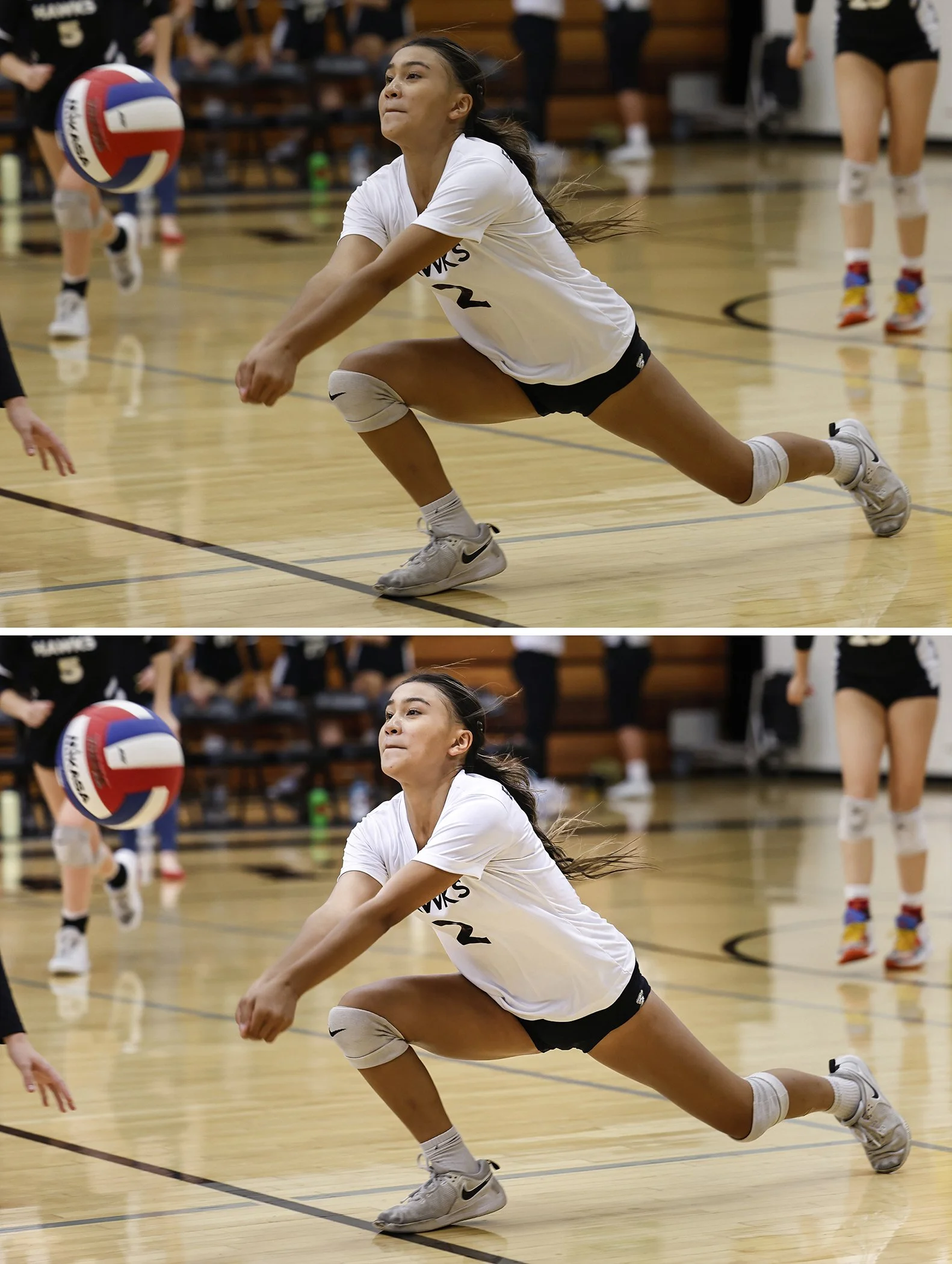 Here’s one that’s been worked with a bunch, but never posted! I had collages on this team for SIX girls and those were posted years ago but the leftovers have been in the back of the fridge for a long time! You can visit 2022 blog posts for Emerson, Emily, Lindsey, Paytin, Sienna, or Sofia but this gallery is the rest of the cast! This is a Preview Gallery so you can see what I have. While all of the photos have been cropped, only a handful of photos have been polished for color, brightness, or whatever else they may need. All ordered photos will get the Sloppy's Treatment before they are sent out. I removed the duds, so if it’s in the gallery I believe it will be a good photo. I have a before and after below so you know what to expect. I just don't have time to shine up everything beforehand. If you want to get your digital files, have me create a canvas, collage or something special, OR schedule me to shoot YOUR team or kid, contact me directly. There's 345 photos in the 2022 El Dorado Varsity Volleyball Gallery (CLICK). B