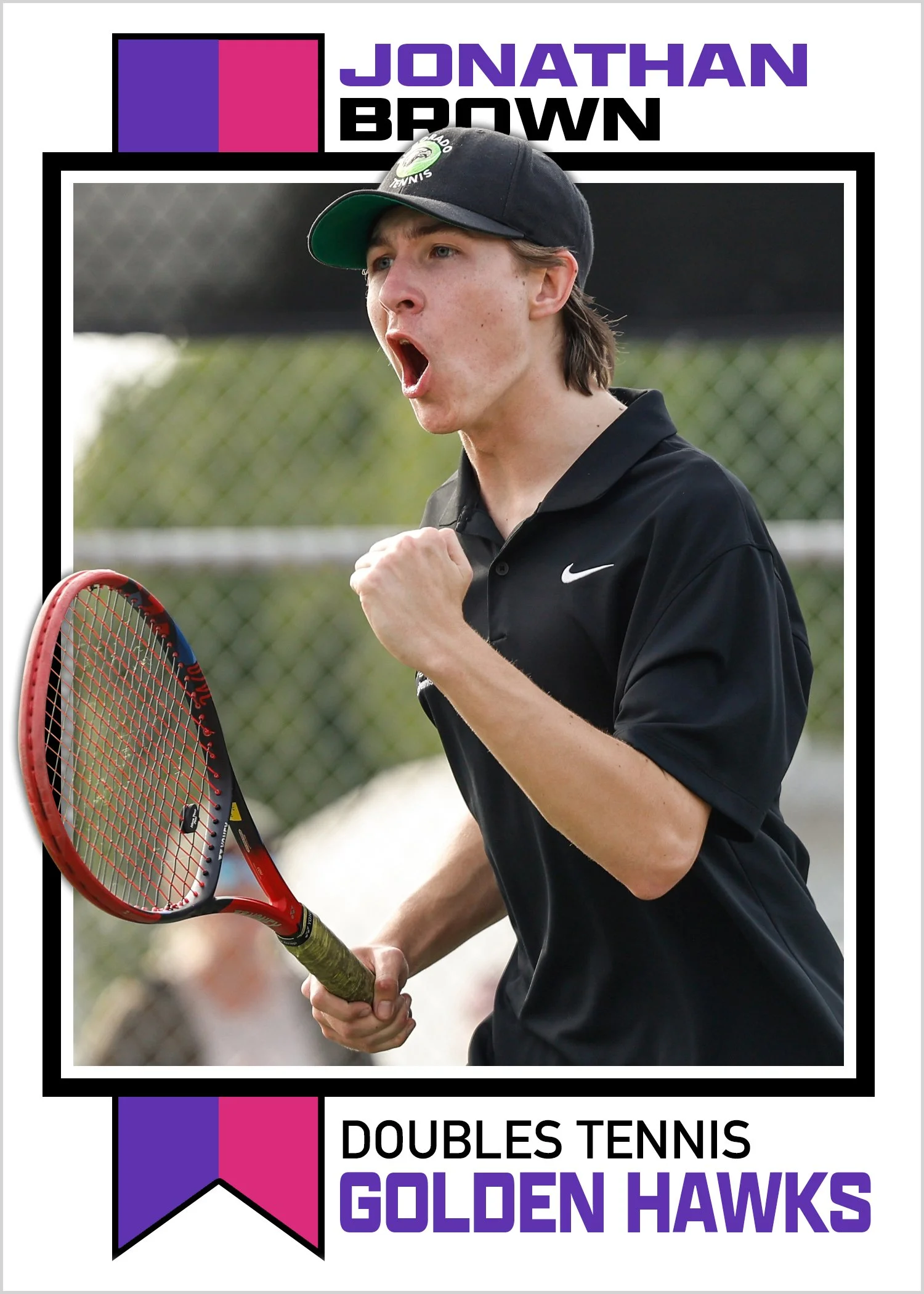 Two versions of Jonathan here! I like to think that he got the haircut because of the moments like the one below! I don’t remember doing a collage where the kid had changed so much from one shoot to the last one. Jonathan played doubles and at times was partnered with Dawson and since I was also shooting him that made for an easier visit. Pretty big plunge with Eldo Tennis this year as I shot Team Pics for boys and girls, including some personality stuff. I love a good follow through and that red racket is killer. As with the previous tennis posts I did my special using a couple of the clipped out rackets from the collage. I got em, might as well use them! Here is Jonathan and his 2025 Tennis Gallery (CLICK). B