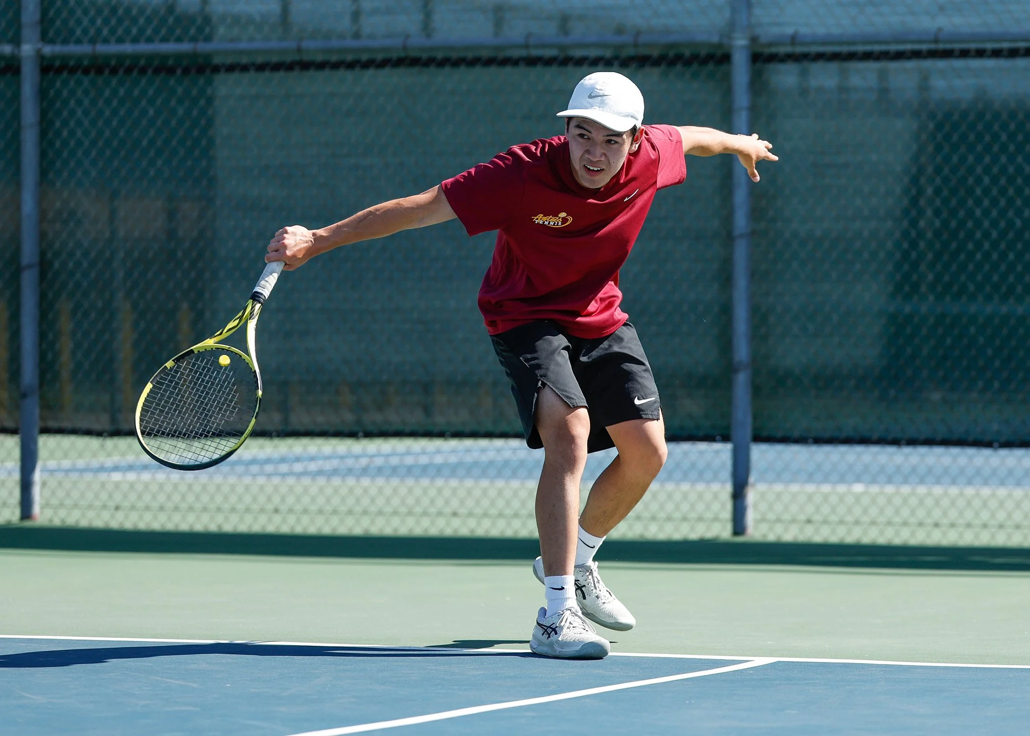 Here’s another tennis post and I’ve got three more coming! This is Lucas, a senior at Esperanza and Team Captain. I got him twice at Esperanza, once in a hat and once without. I also shot him over at El Dorado, those are easy to see because of the black screens instead of the tennis green. I like shooting tennis because you get to fire almost non-stop. Especially singles, Lucas hits, resets, and hits again. I can wait forever for a ball to come to a soccer or football kid, so this is a treat. I stay for 30 minutes and pop back and forth between the kids I need, switching depending on the sun. Lucas was crushing it on the far court, and I like the wall graphics adding some color to these. For the collage I send the files away to be clipped, I’m not patient enough to clip out the strings! Lucas has a younger brother who was looking pretty good too! If you want to see a freshman Lucas, check this! Here is Lucas in his 2025 Tennis Gallery (CLICK). B