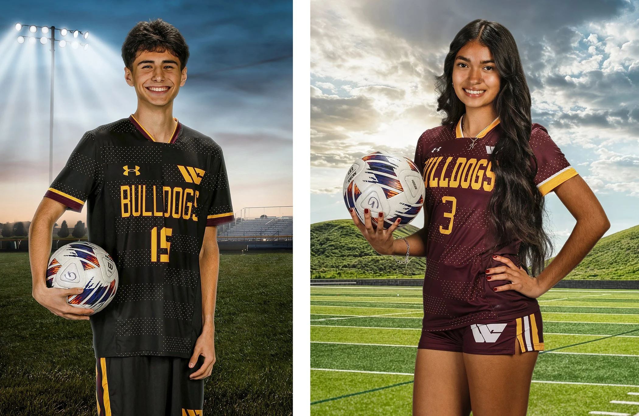 Another year with the West Covina Soccer Seniors. The girls came into the studio first and we spent a little while getting some good stuff for the double image banners. When the boys arrived it was a lot more streamlined as these guys really weren’t into hamming it up too much. I put some initial mock ups together and actually went with more gold thinking the maroon was too much. Brooke had me switch it up and after we got the color just right (it was too red) I added some clarity. The grit made everything pop and these turned out fantastic. A couple parents had me work on poses for Senior Dedications in the yearbook. There’s two galleries on this, one for the boys and one for the girls. B