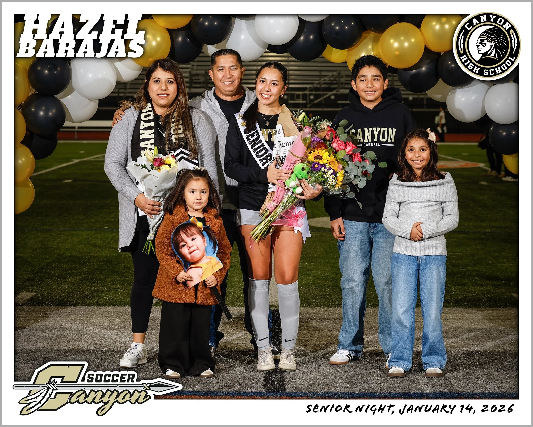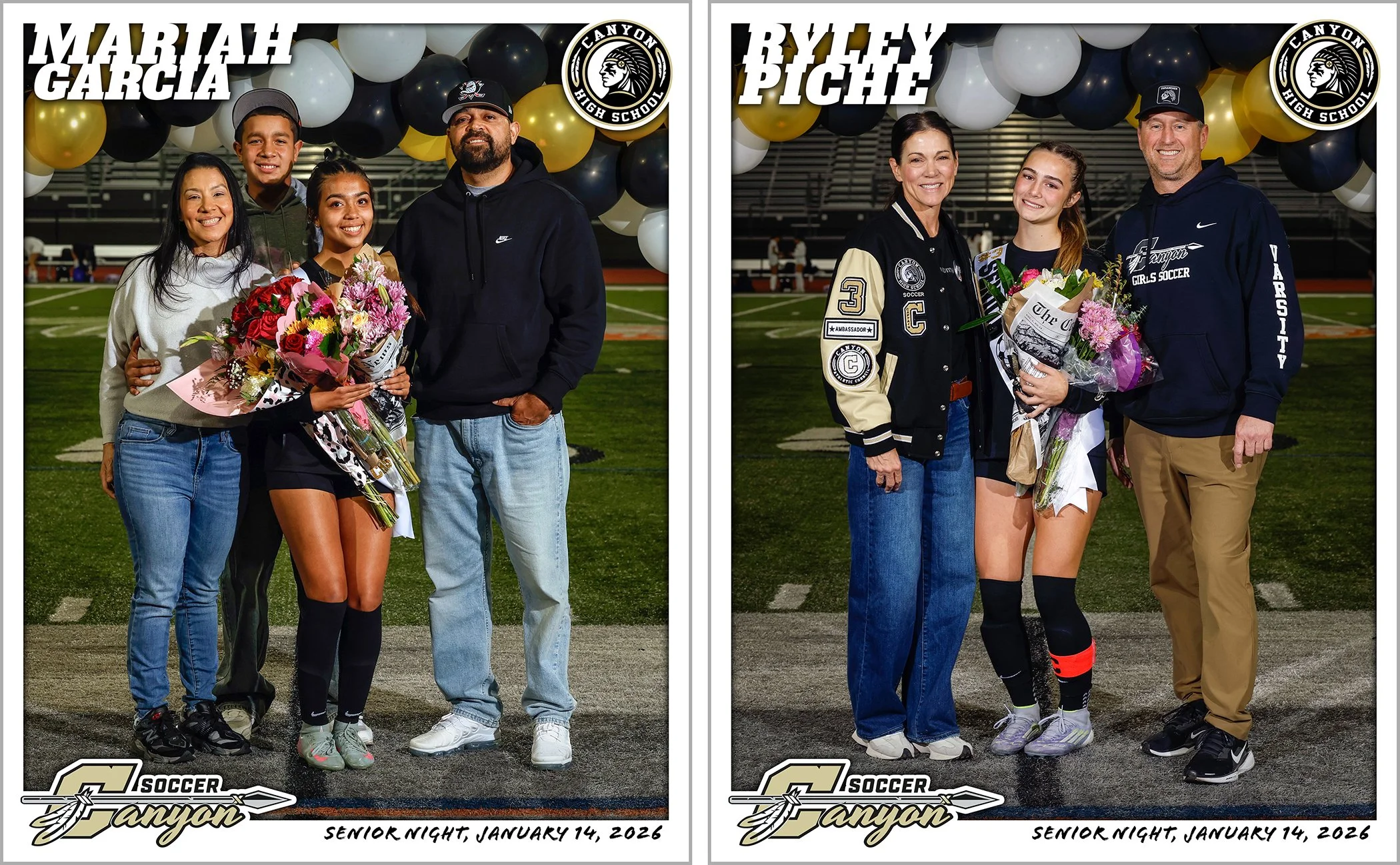 I like doing these ceremonies and that’s a good thing because I have a few more to post! When I got to the field there was two girls just settling in to make the balloon arch. I was worried that it wasn’t going to get done in time with just two girls! Balloons kept popping! Soon a crew of 4-5 more ASB kids arrived and the project was kicked into high gear and it was done in a flash. Teamwork! I’ve shot Canyon’s Girls Soccer a couple of times before and it’s always a large group. Here’s the first one in 2023. I didn’t stay for the actual game this year, but I did shoot the team in action against El Dorado the following night. I’ll post those photos eventually. This gallery is paid for and set up for downloading. Here’s the instructions. I have prints coming for all the girls, but if you need extras you can order discounted prints from here as well. Here is the 2026 Senior Night Gallery (CLICK). B